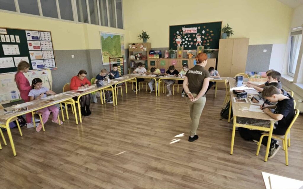 Wpadli jak burza, nawieźli strojów, instrumentów, zabawek, materiałów plastycznych i tak zajęli się uczniami klasy trzeciej, że nie wiadomo kiedy minęły trzy godziny.