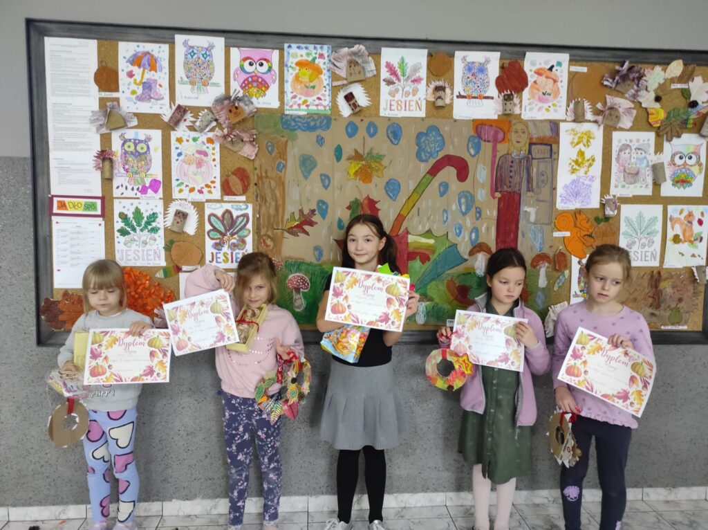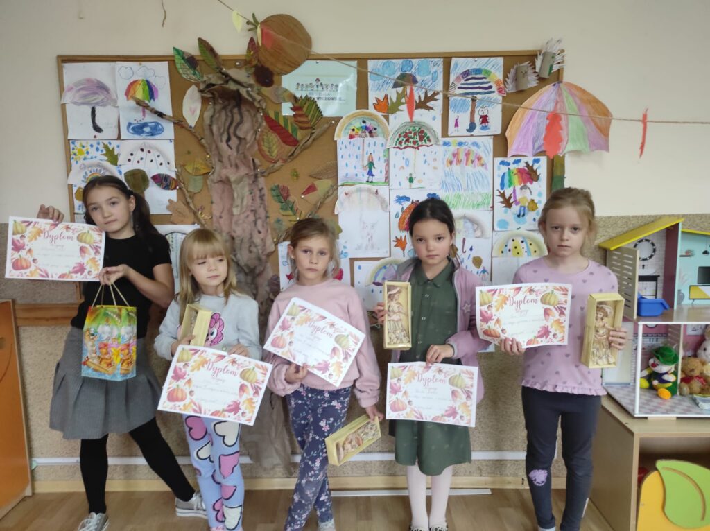 Zwycięzcy oraz osoby wyróżnione otrzymali pamiątkowe dyplomy oraz nagrody. Serdeczne gratulacje składam nie tylko laureatom, ale wszystkim uczestnikom konkursu. Każde dziecko, które wzięło udział w jesiennym konkursie, otrzymało dyplom uczestnictwa. Jestem dumna z Was wszystkich. Dziękuję za zaangażowanie i wspaniałą, jesienną atmosferę.