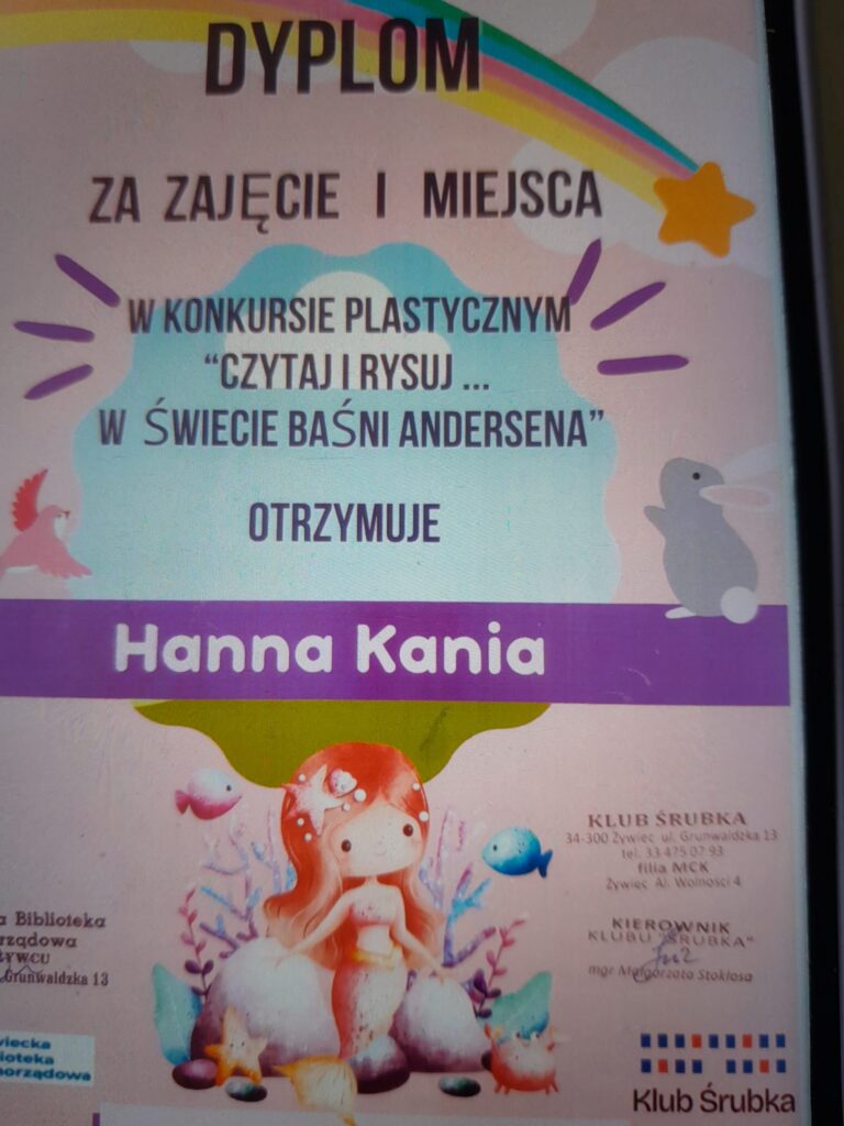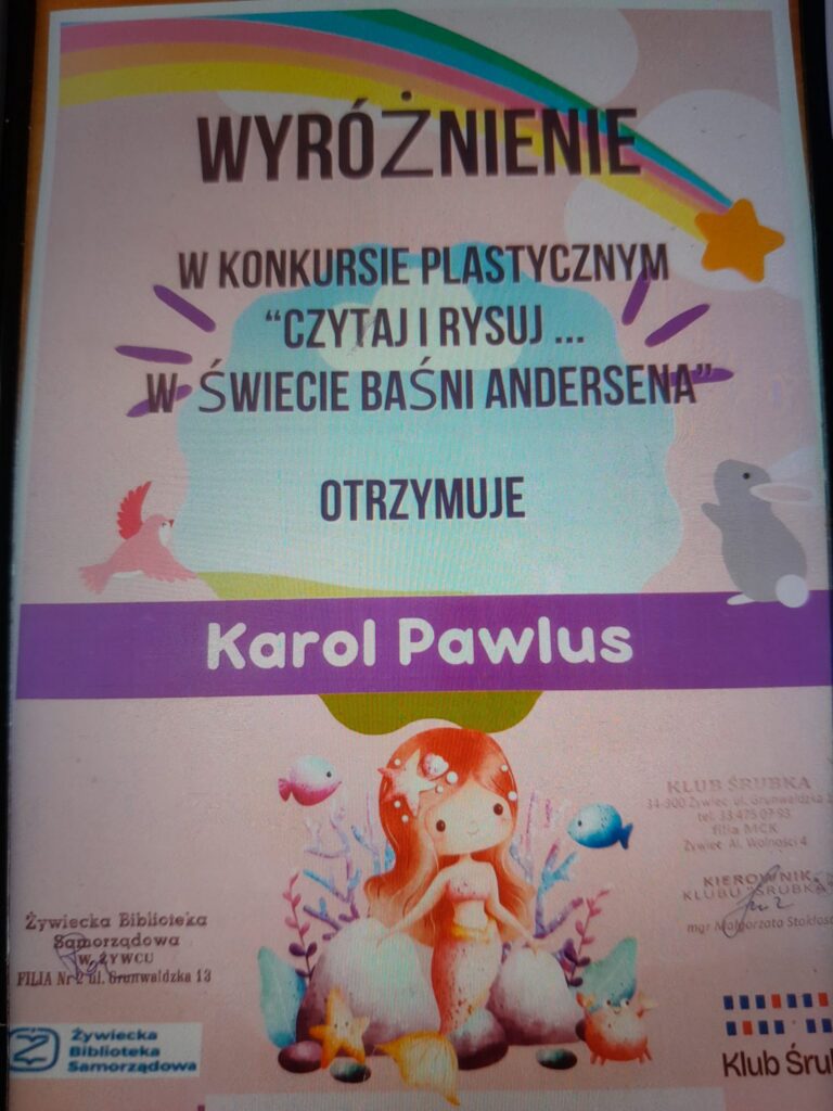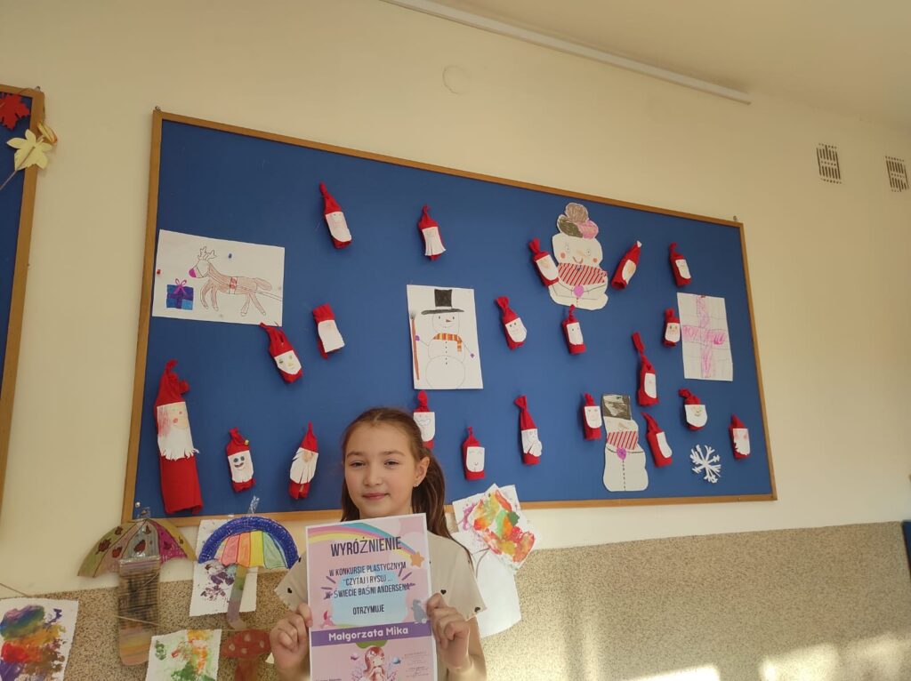 Z ogromną radością informujemy o sukcesie naszych utalentowanych uczniów w Powiatowym Konkursie Plastycznym pt. W świecie Baśni Andersena -Czytaj i rysuj. Konkurencja była ogromna – na konkurs wpłynęło aż 217 prac z całego powiatu. Tym bardziej cieszą nas znakomite wyniki reprezentantów naszej szkoły: