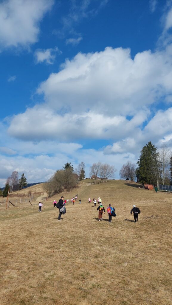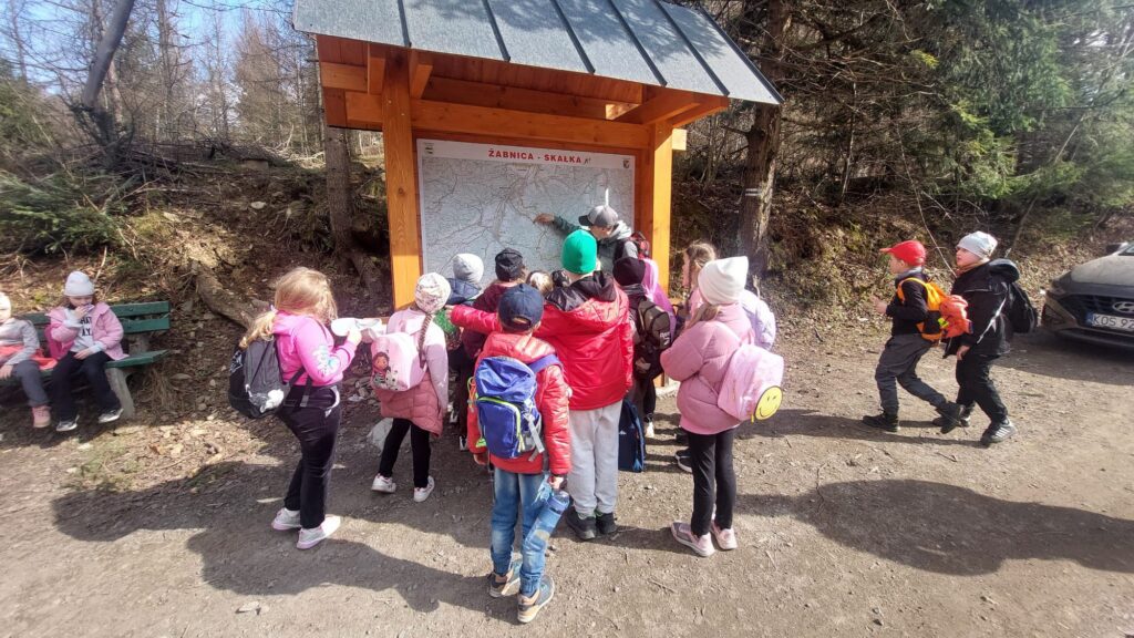 Do szukania pierwszych oznak wiosny na Hali Boraczej na ochotnika zgłosiła się klasa 1b. Dzieci na własnych nogach, niosąc plecaki pełne słodyczy i maskotek dotarły z Żabnicy Skałki, czarnym szlakiem do samego schroniska.