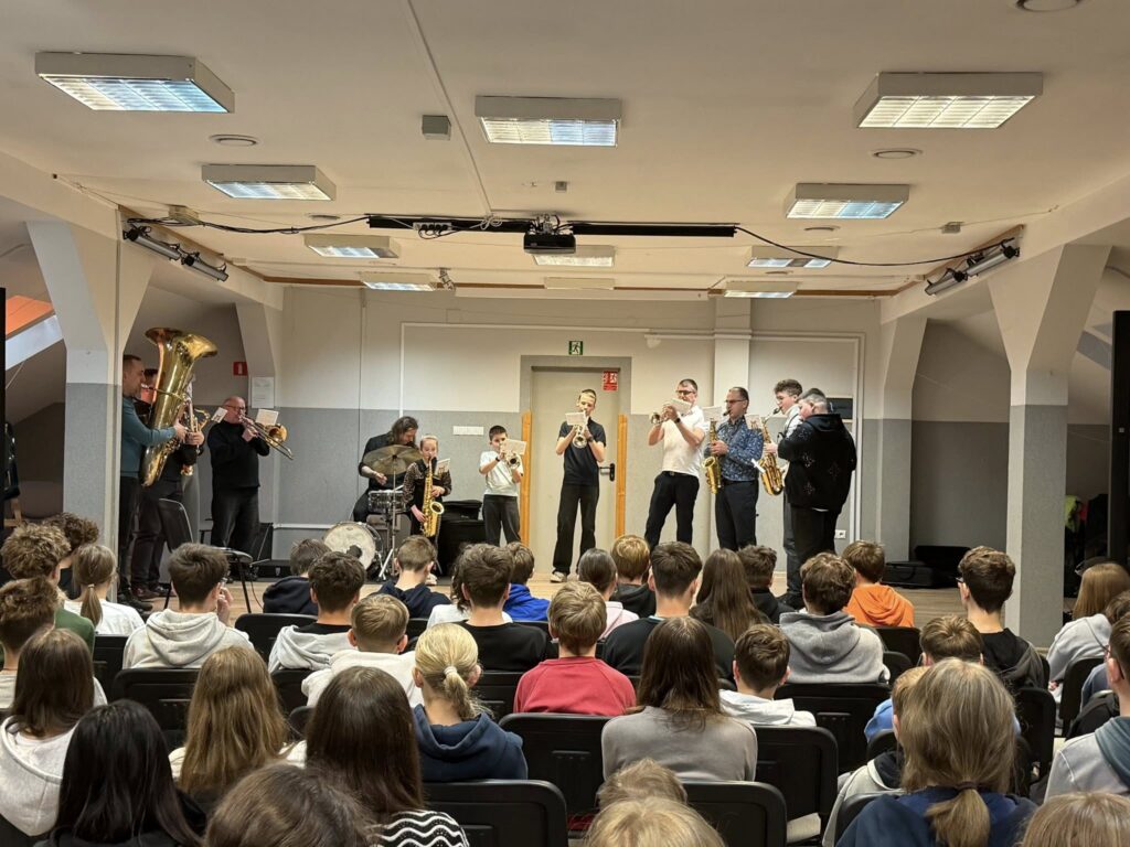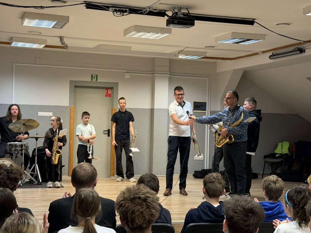 Nasi uczniowie wzięli udział w spotkaniu z profesorami Szkoły Muzycznej w Żywcu i przedstawicielami Parafialnej Orkiestry Dętej Barka, którzy opowiadali o swoich muzycznych pasjach.