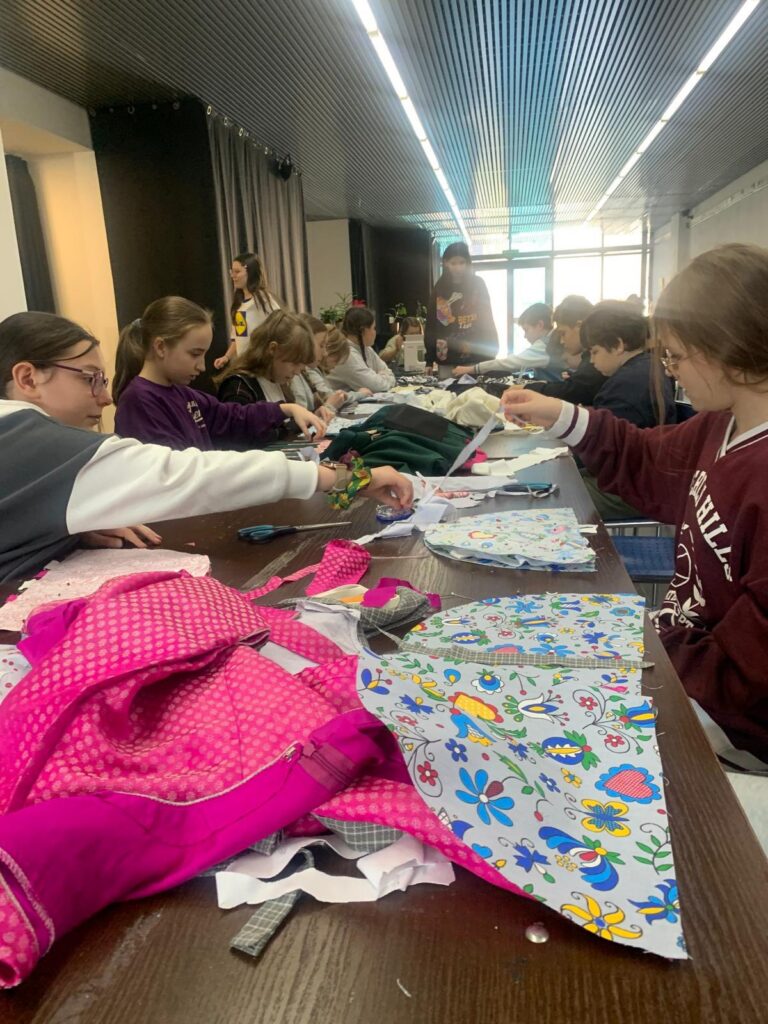 A klasa piąta poznała tajniki szycia podczas zajęć: Drugie życie ubrań, zorganizowanych przez Ośrodek Promocji Gminy Węgierska Górka.